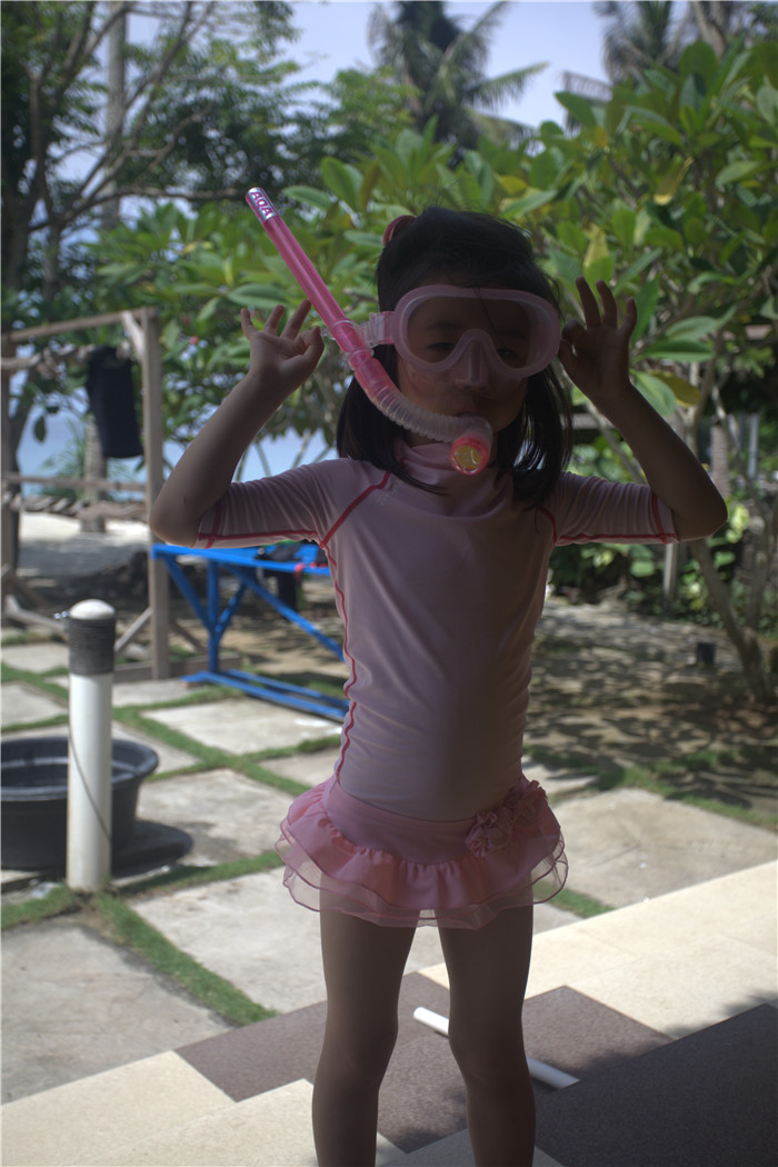 大厅和潜水中心浮台间的一片树荫下的沙地是孩子们的天地,给寄居蟹挖条长长的跑道或建座漂亮的公主城堡就足以让孩子们开心地玩上一整天,家长陪着捣蛋鬼们疯累了,可以趟在旁边的吊床上喝杯冷饮偷偷休息下。
