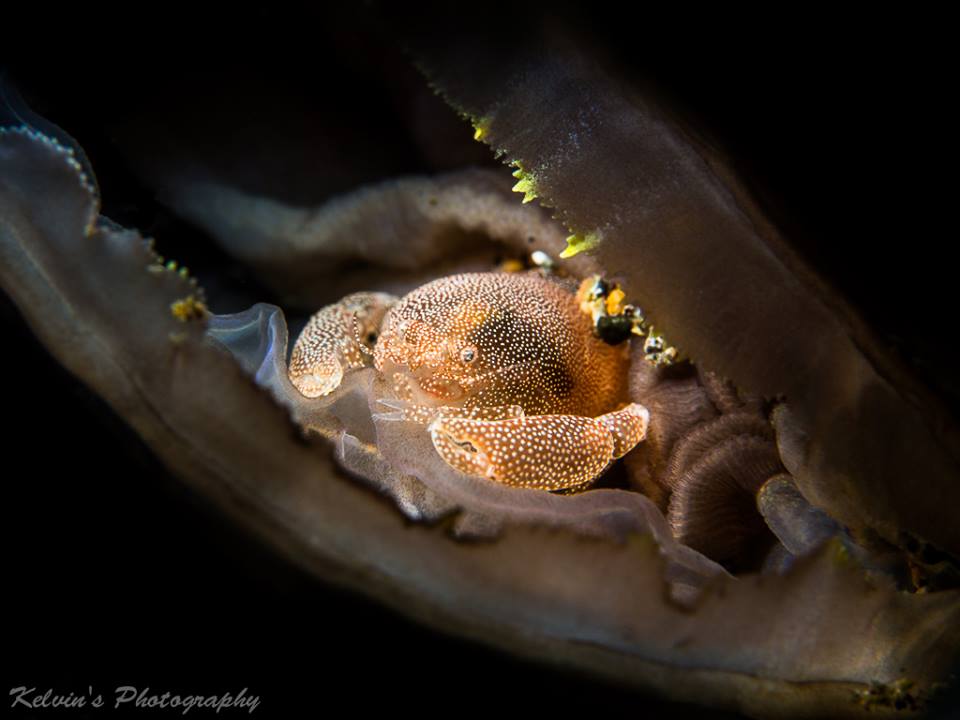 Title: Scallop Platter (Shrimp Cleaning Scallop Parasite) Location: South Leyte, Philippines Camera: Canon 5d mark III Housing: Nauticam Lens: 100mm IS USM Diopter: ATG +10 stacked 3 Strobe: Single Inon Z240 (fiber glass optic snoot) Setting: ISO 100, f16, 1/125 secs Photo by Kelvin Tan HY