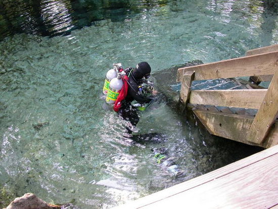 由于其纷繁复杂的地形,只有技艺高超的潜水高手才会尝试洞窟潜行。但是里面的水异常清澈而且全年温暖。这使魔鬼洞窟成为了美国最佳潜水胜地之一。